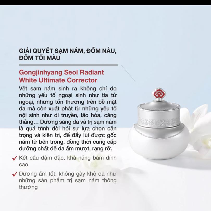 Và dòng sản phẩm cao cấp Whoo - Cao Trị Nám Whoo Gongjinhyang Seol Radiant White Ultimate Corrector 50ml