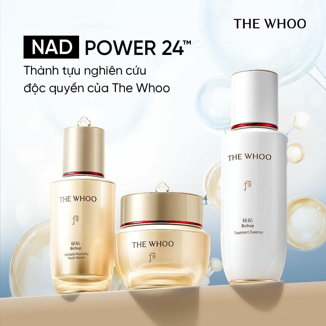Tinh chất tự sinh thế hệ thứ 4 với công thức độc quyền NAD Power24™ giúp hỗ trợ cung cấp độ ẩm và cải thiện hàng rào bảo vệ da, cung cấp dưỡng chất thiết yếu cho làn da, hỗ trợ cải thiện lão hoá, nếp nhăn, độ đàn hồi cho làn da rạng rỡ. Ngoài ra, serum THE WHOO Bichup Ultimate Recovery Youth Serum còn giúp làn da hồng nhuận tự nhiên. Serum thẩm thấu nhanh, không gây nhờn rít. Sản phẩm có hương thơm dễ chịu từ các thành phần Đông y và hoa cỏ giúp mang lại cảm giác thư giãn khi sử dụng.